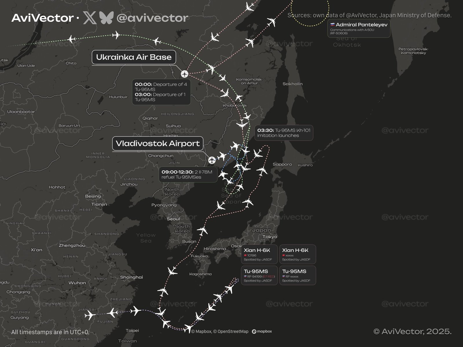 Segundo autoridades japonesas, bombardeiros russos se uniram a aeronaves militares chinesas em um voo conjunto que se aproximou das zonas de identificação de defesa aérea do Japão. Embora não tenha havido violação do espaço aéreo japonês, o movimento foi monitorado de perto pelas Forças de Autodefesa, que mobilizaram caças para acompanhar a operação.